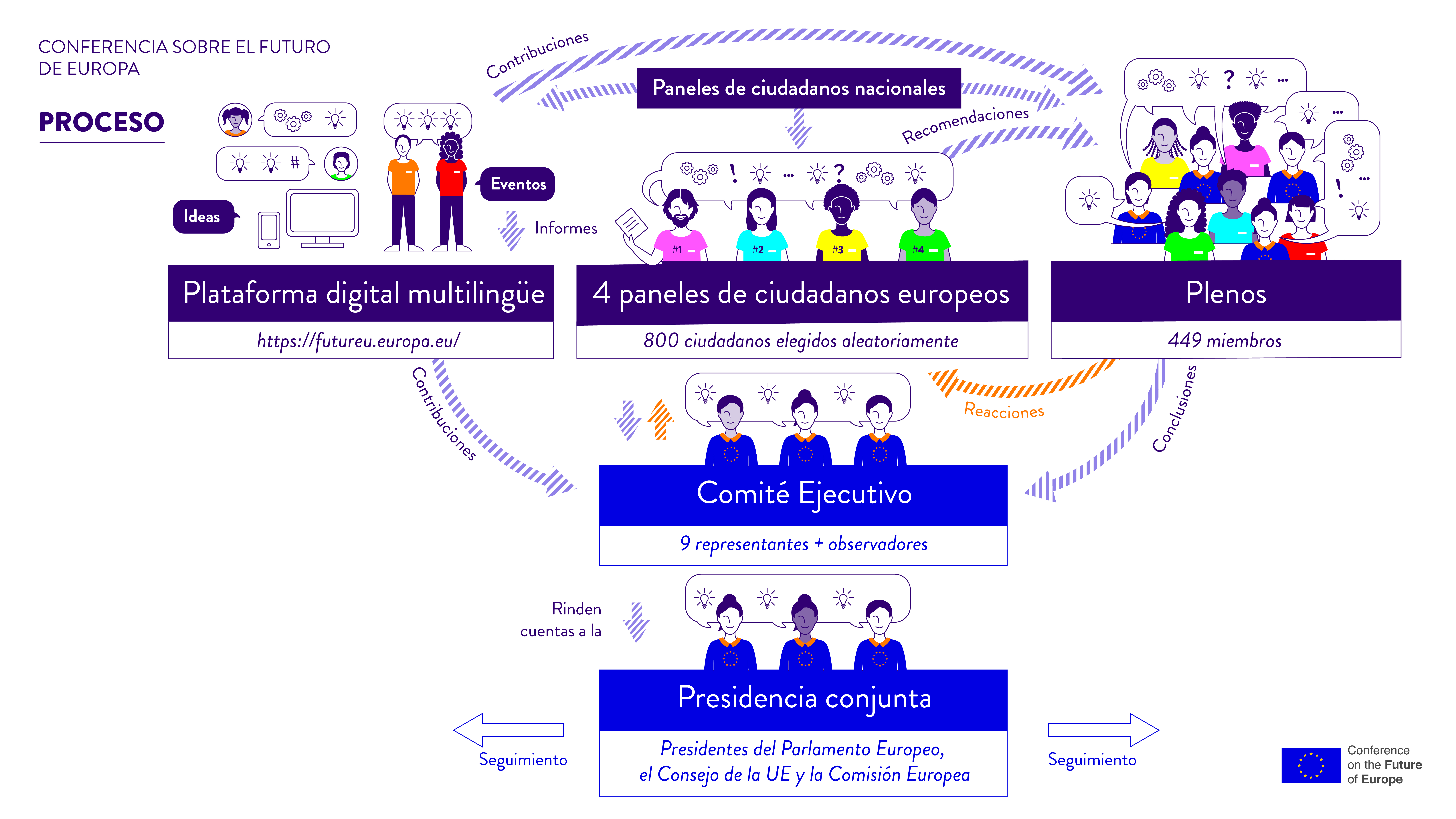 La Conferencia sobre el Futuro de Europa es una iniciativa conjunta del Parlamento Europeo, el Consejo y la Comisión para escuchar a los europeos, de forma que puedan expresar su opinión sobre el futuro de Europa.